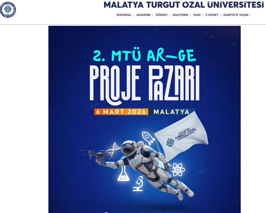 II. MTÜ Ar-Ge Proje Pazarı 2026 Başvuruları Başladı Malatya Turgut Özal Üniversitesi tarafından düzenlenen “II. MTÜ Ar-Ge Proje Pazarı 2026” etkinliği, yenilikçi fikirleriyle geleceğe yön vermek isteyen öğrencileri, akademisyenleri ve sanayicileri bir araya getiriyor. Yenilikçi fikirlerinle geleceğe yön vermek, bilimsel üretkenliğini paylaşmak ve Ar-Ge ...